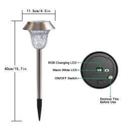 6pack Solar Powered Stainless Steel Warm White/RGB Color-changing Garden Lawn Lights, Outdoor Waterproof LED Yard Stakes Landscape   Pathway Walkway Decorative Lights, Light Sensing Automatic Switch