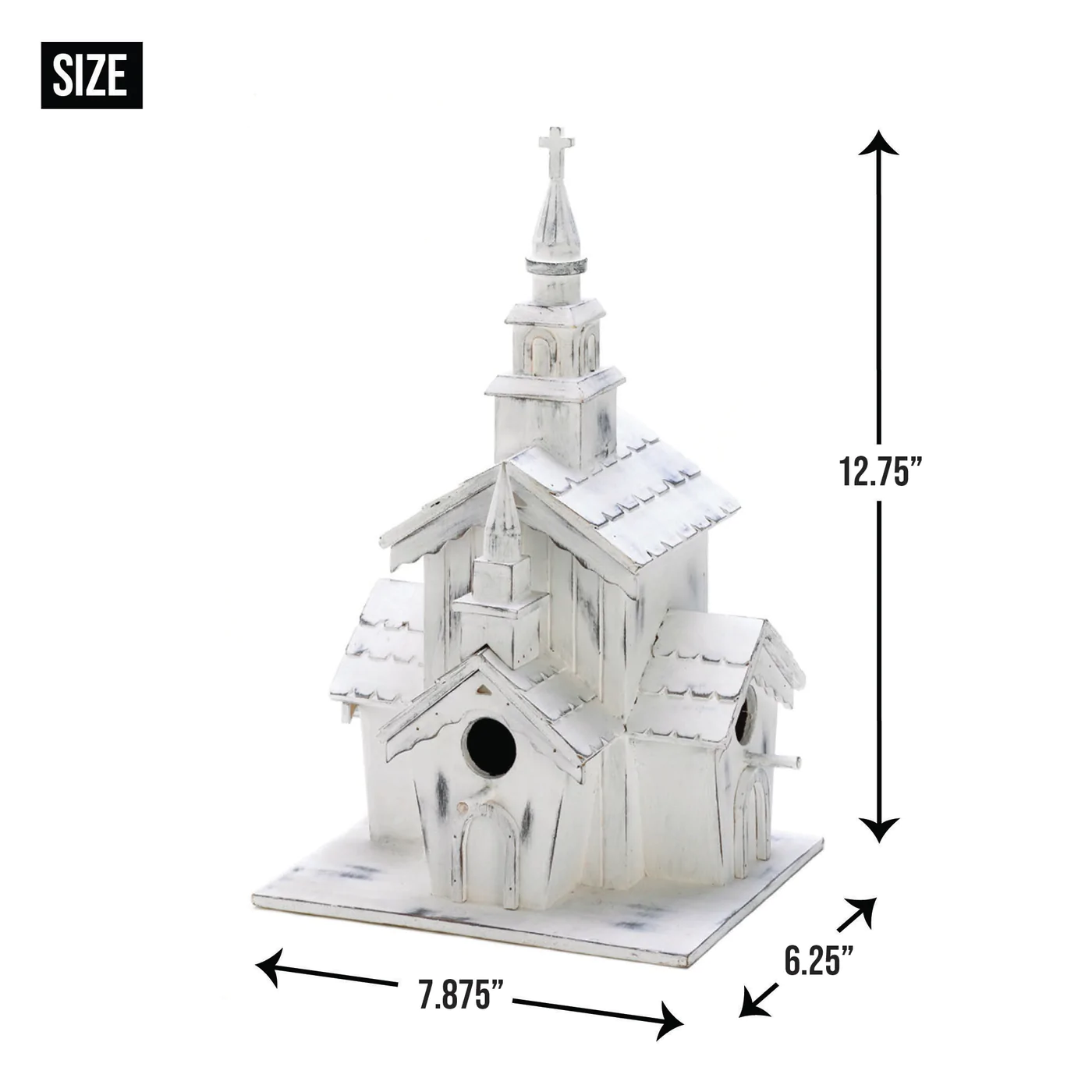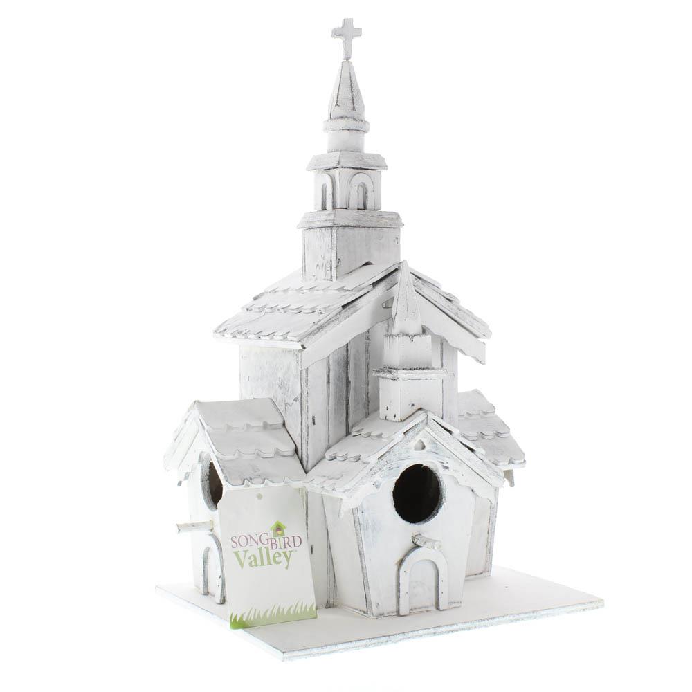 • This country chapel is a wonder of white woodwork and a heavenly haven for some blessed birdies. Three separate openings create a welcome for a whole flying congregation!