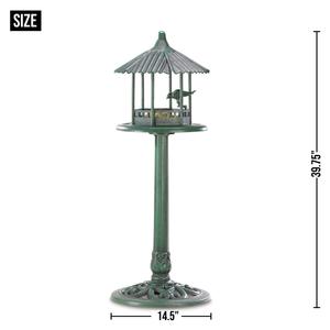 • The classic look of weathered copper is perfectly captured in this amazing lightweight standing birdfeeder! You'll delight at the luxurious appearance of this glorious garden accessory, from the fluted rooftop to the intricately detailed base.