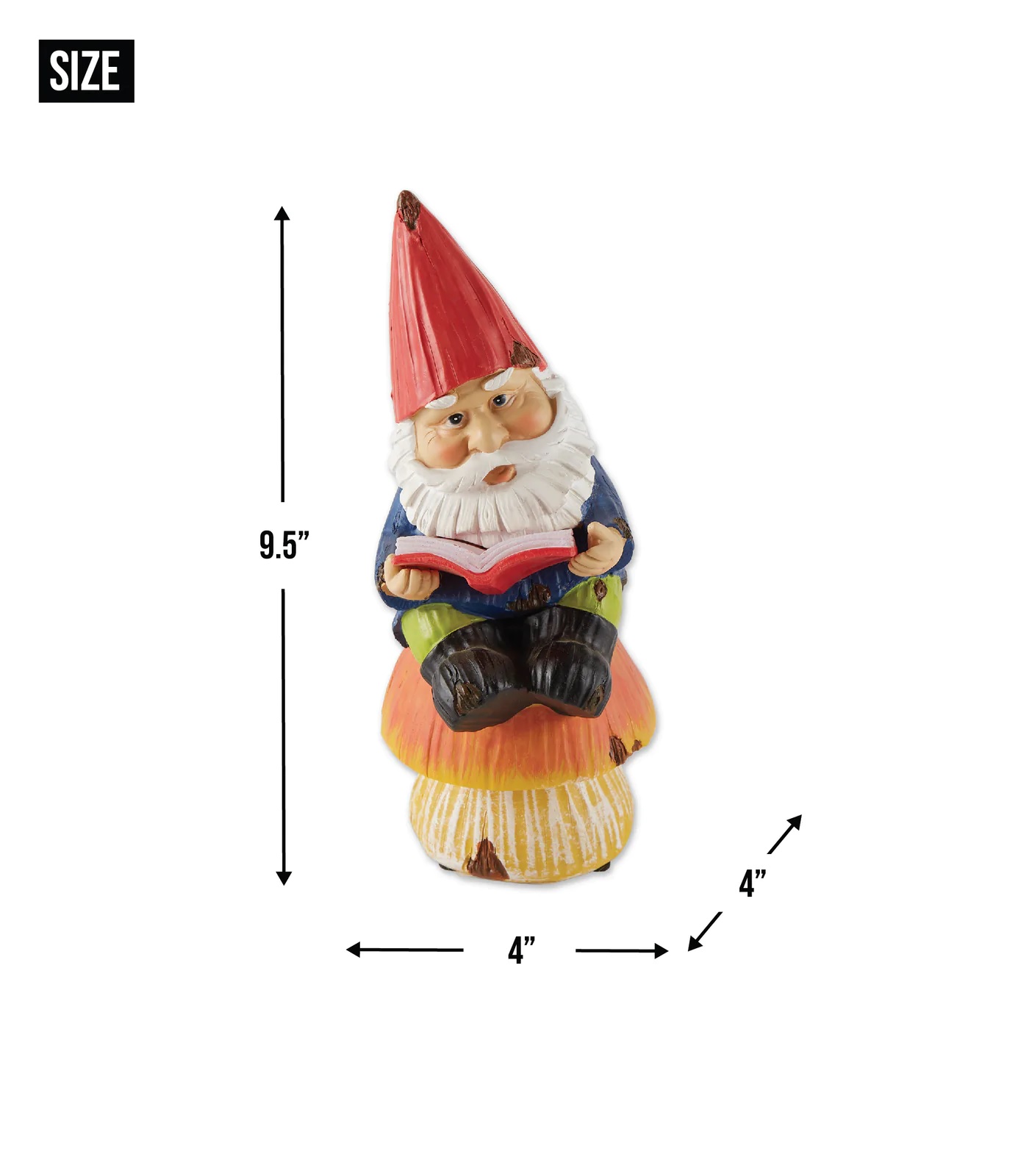 • This charming little gnome is lost in a good book, but you'll always be able to find him thanks to the solar panel that makes him glow!