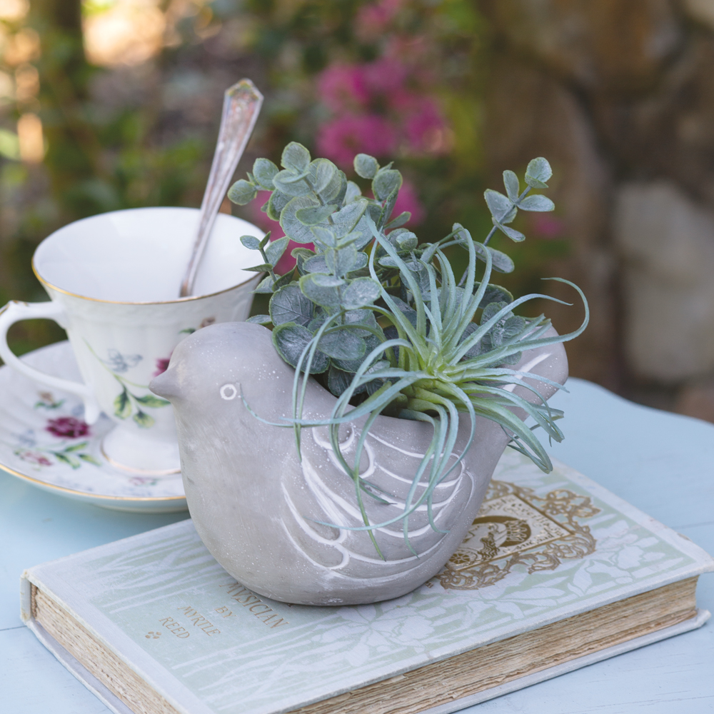 This charming pot features an adorable bird design that adds a playful and whimsical element to your space. It's perfect for showcasing your favorite succulents or small plants. Let this little cement bird perch on your windowsill, shelf, or garden table. The opening hole measures 2¼'' dia.